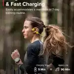 Terbuka untuk apa yang ada di luar sanaTeknologi open-ear memungkinkan Anda mendengarkan musik dan pada saat yang sama tetap mendengar lingkungan sekitar. Alih-alih headphone in-ear tradisional, Suunto Wing diletakkan di tulang rahang Anda sehingga liang telinga Anda tetap terbuka untuk tetap waspada terhadap alam atau lalu lintas di sekitar Anda.