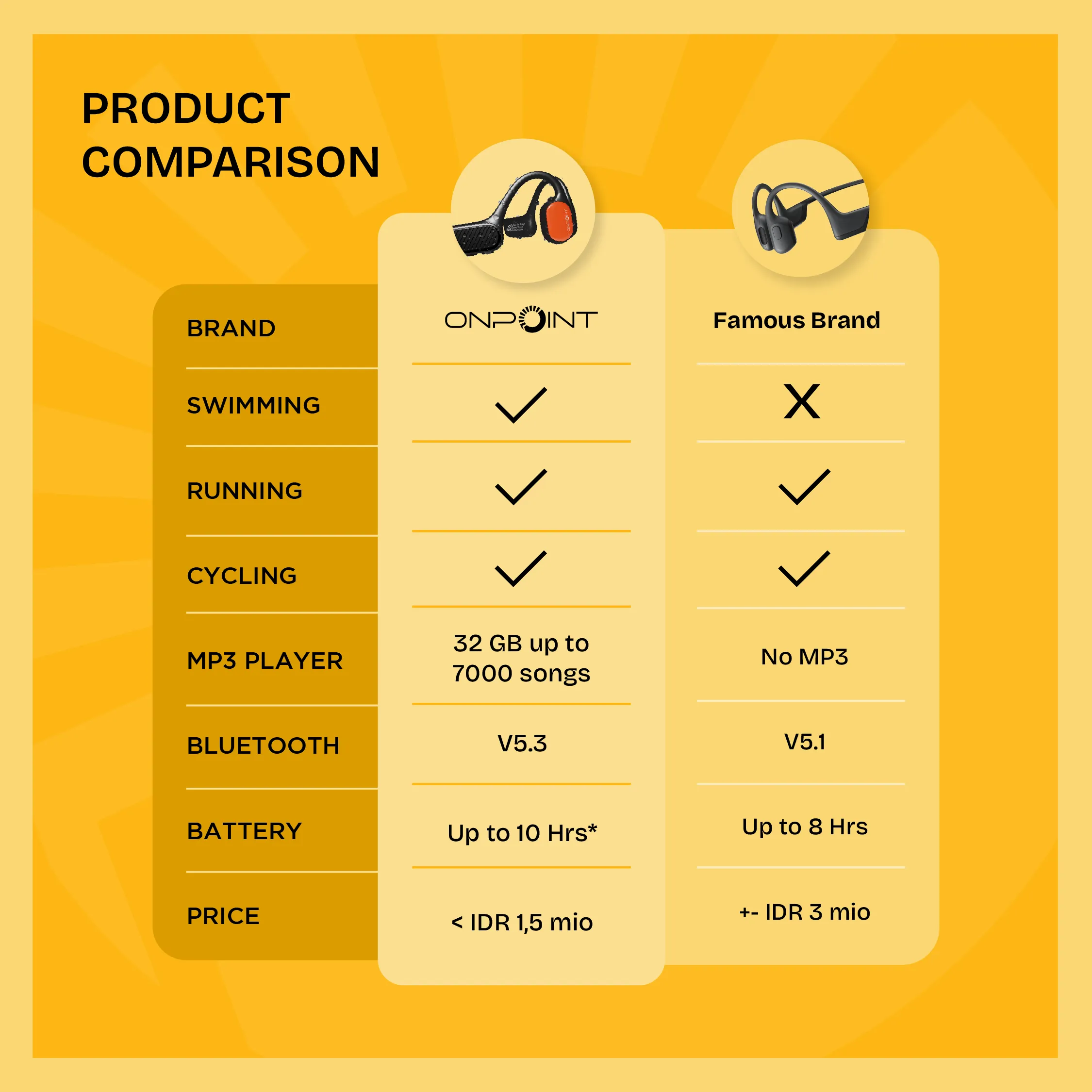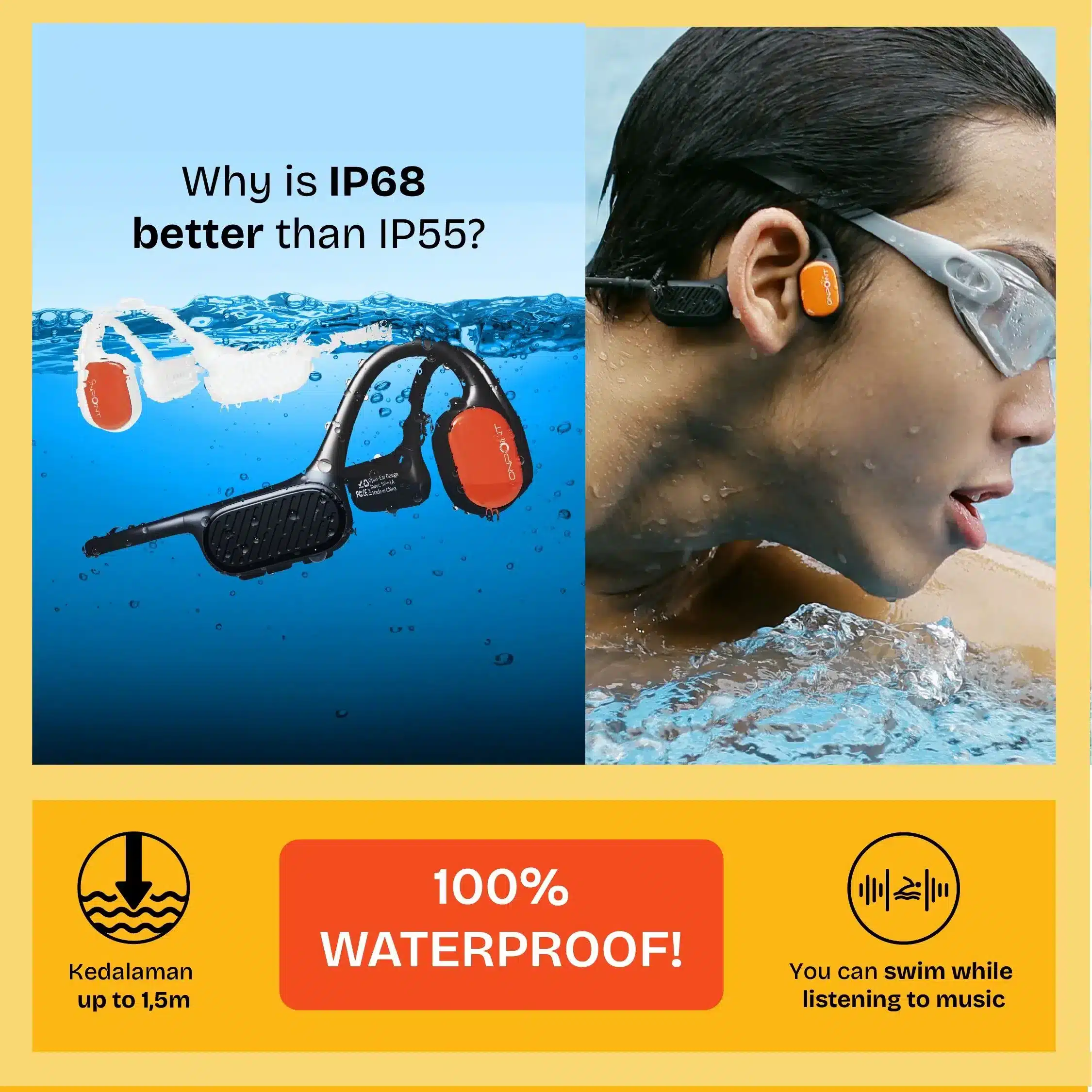 - Desain telinga terbuka untuk kenyamanan dan keamanan